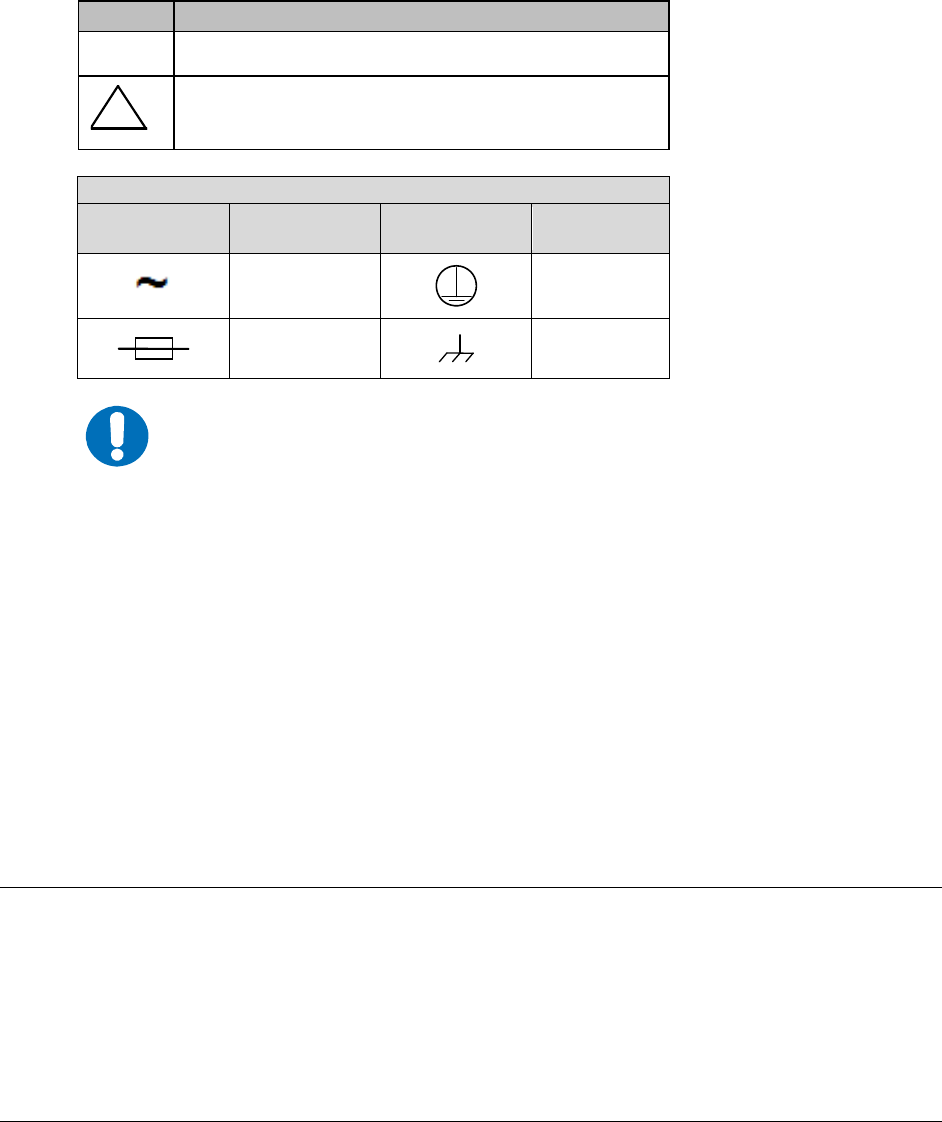For additional symbols, refer to Cautions and Warnings listed earlier in this