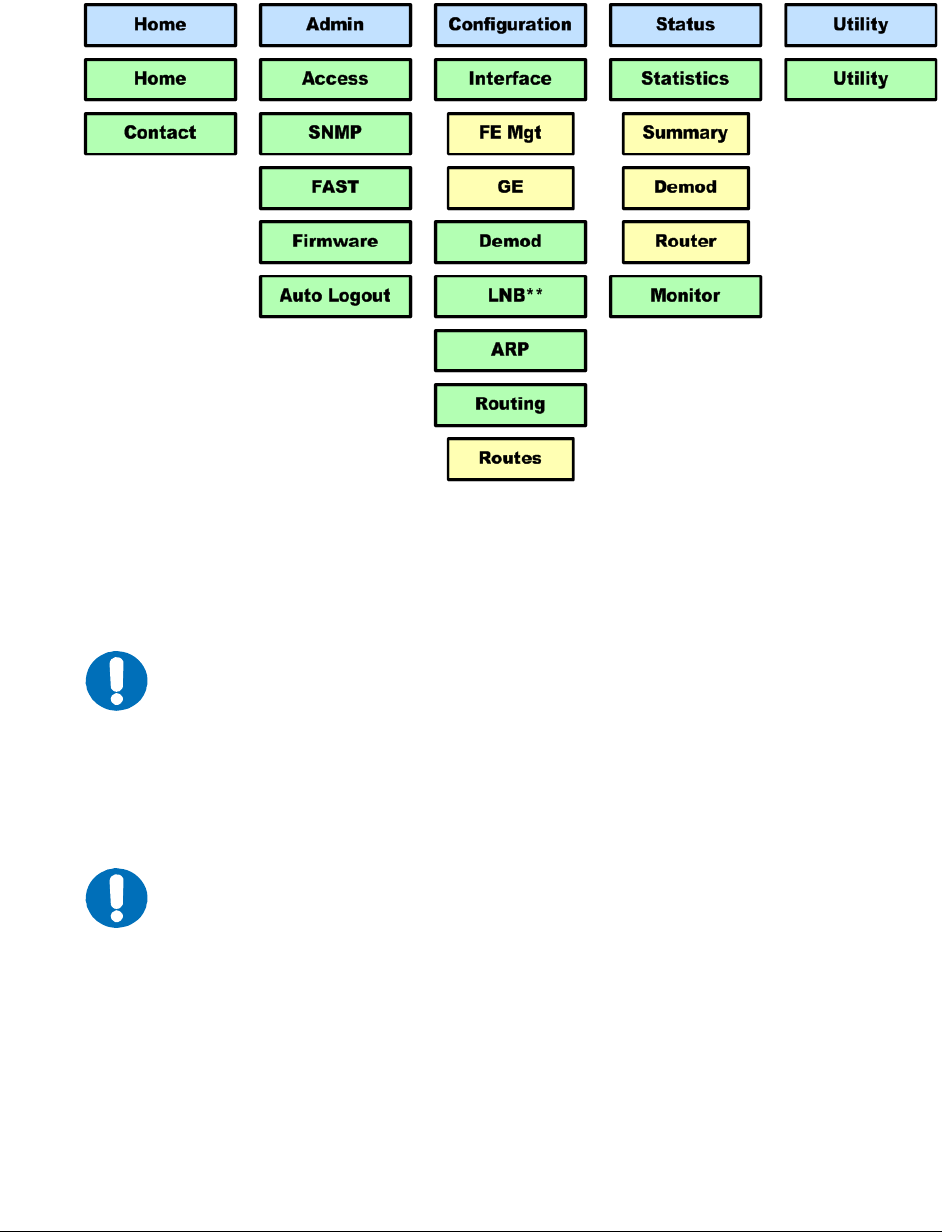 The CDM-840 Web Server Interface pages in this diagram that are marked with