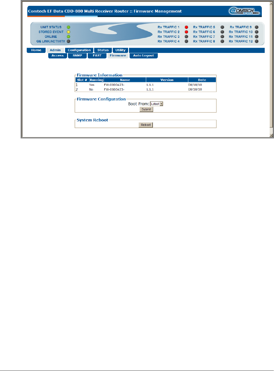The ‘Admin | Firmware’ page (Figure 5-6) is used to select the c