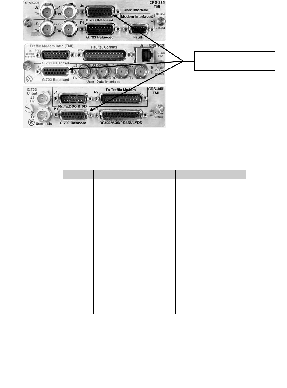 G.703): Located at J6 on the CRS-325; J1 on the CRS-330; and P1 on the CRS-340.