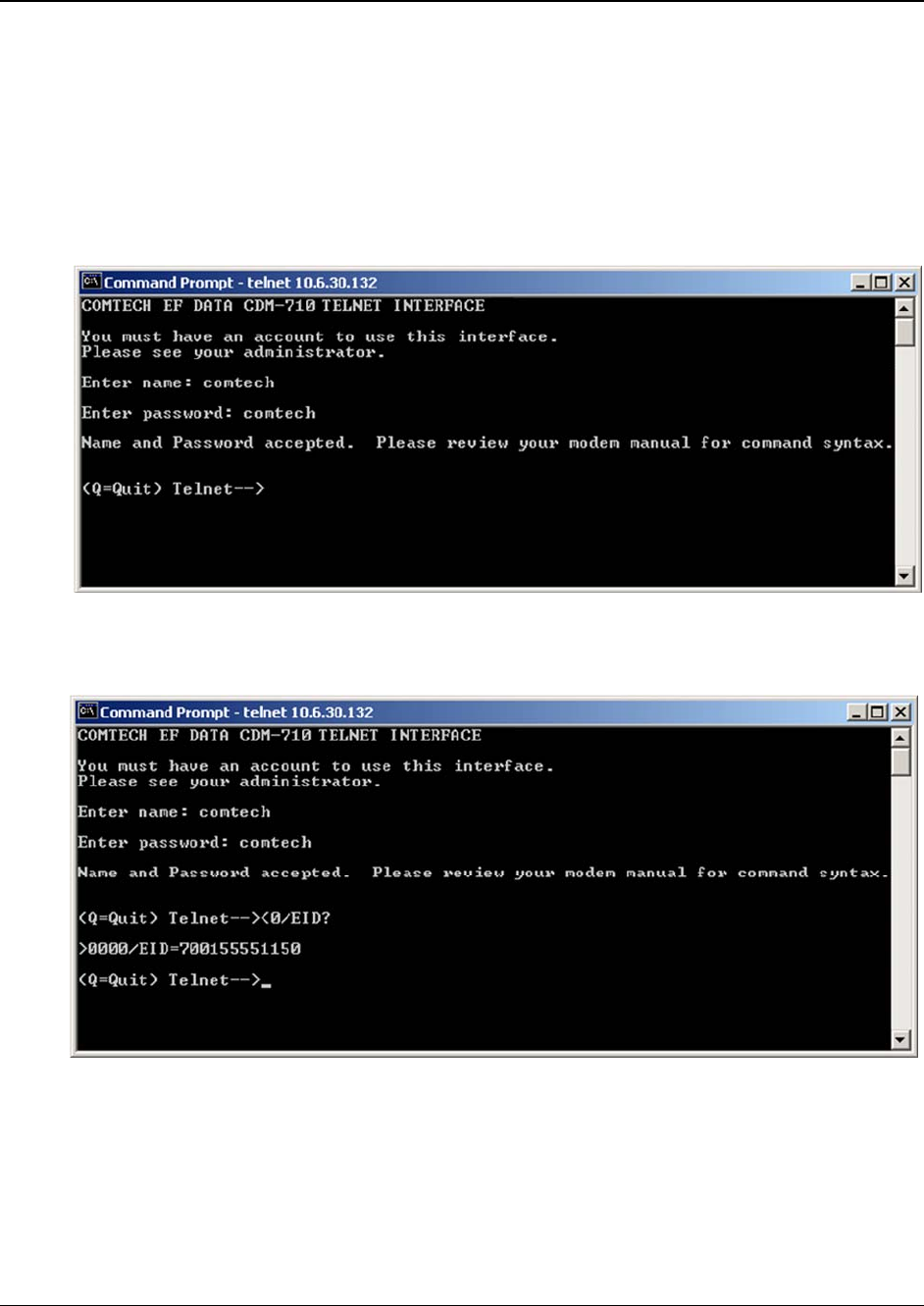 CDM-710G High-Speed Satellite Modem provides a Telnet interface for two primary functions: