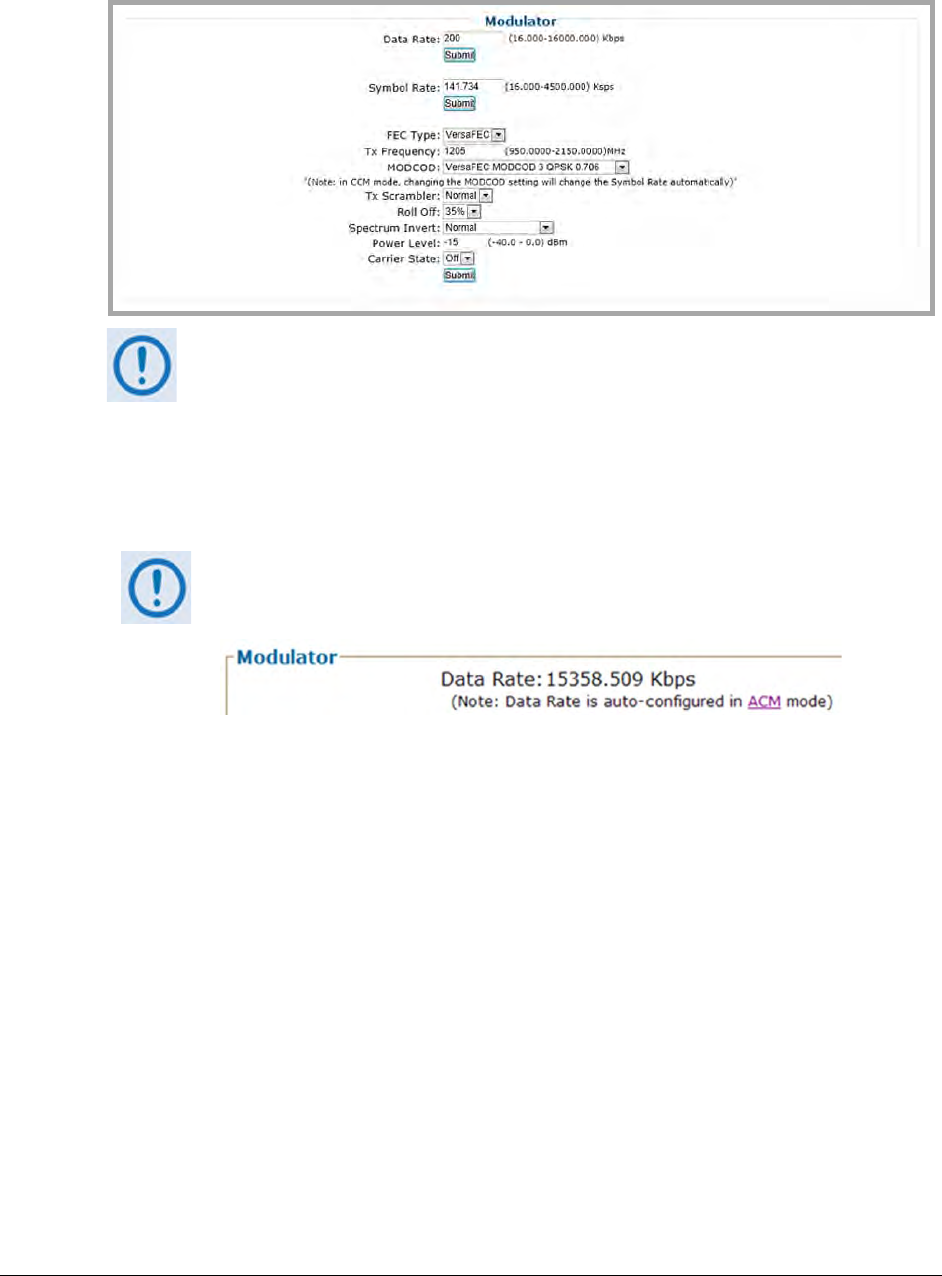 • Symbol Rate (16 to 4500) – Enter The CDM-840 Tx Symbol Rate in ksps. Click [Submit] to