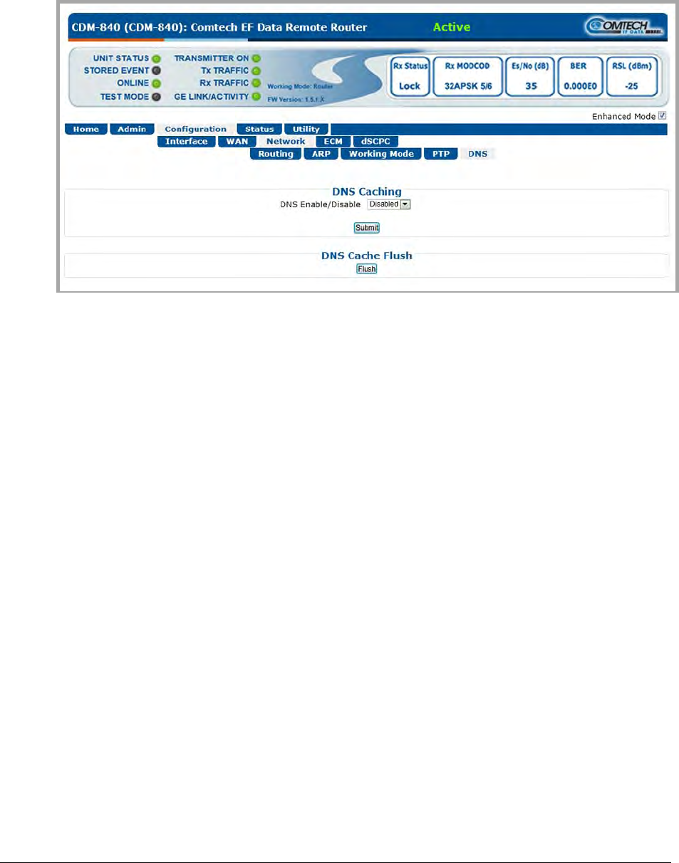 • When the CDM-840 receives a DNS query at one of its Ethernet Ports, a DNS cache look