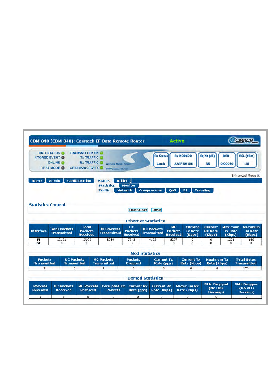 statistics for the Ethernet, Modulator, and Demodulator traffic.