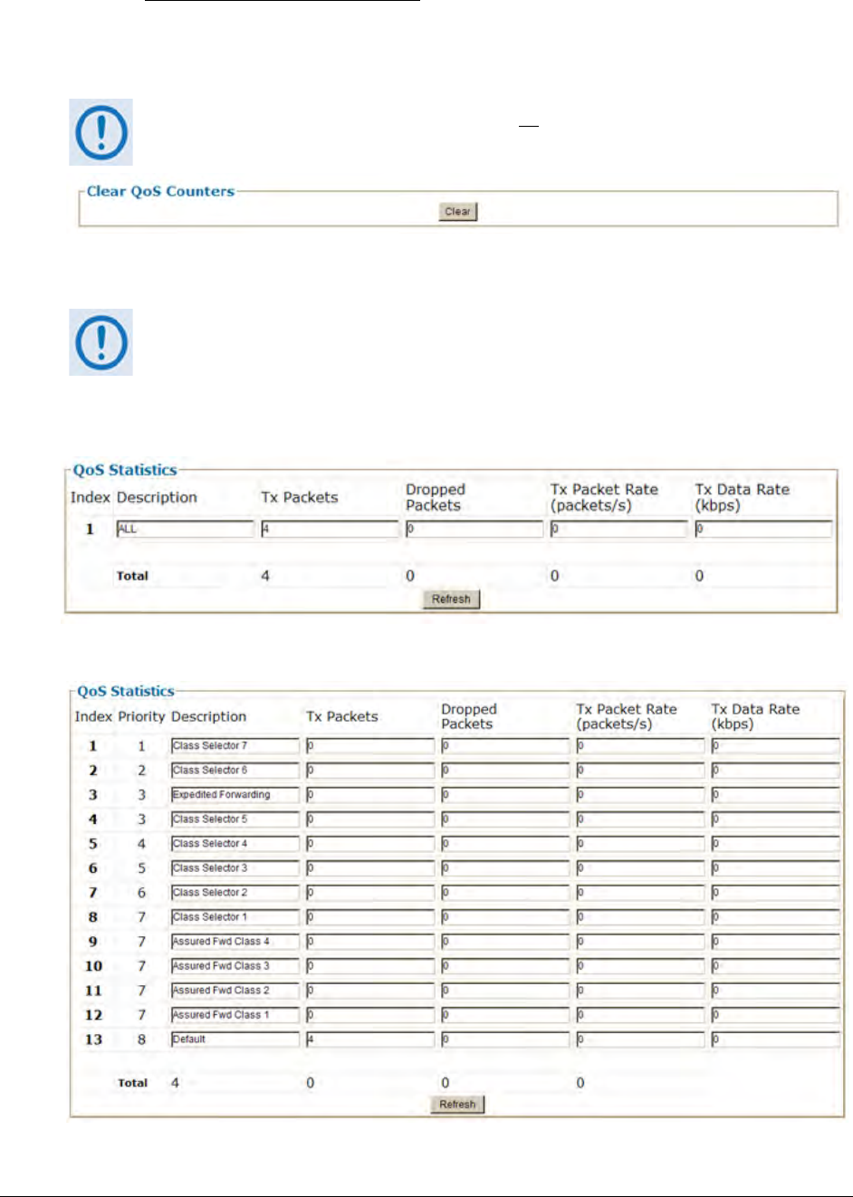 The Clear QoS Counters section is typical for all page configurations. Click [Clear] to