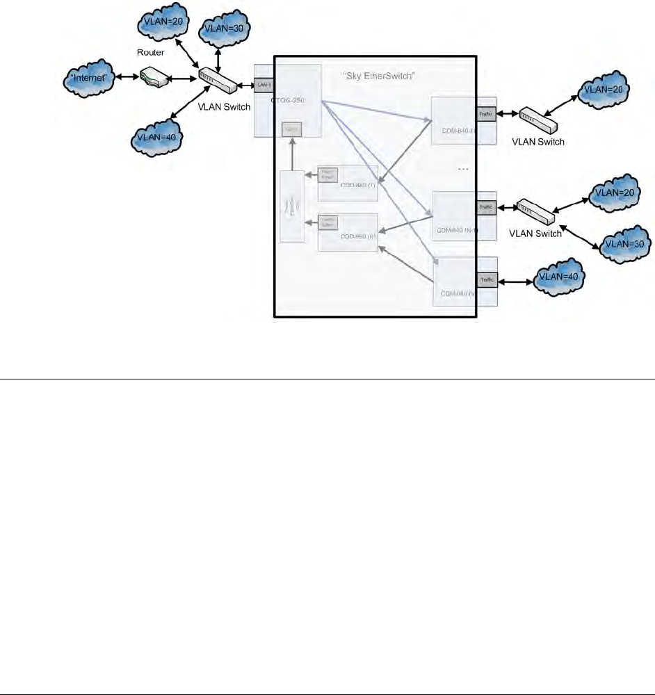 By default, the CDM-840 equipment functions as a VLAN trunk and passes all traffic received on